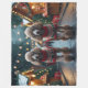 This festive design captures the joyful spirit of the holiday season, featuring an adorable dogs.Nestled in a winter wonderland, complete with a decorated Christmas tree, and beautifully wrapped presents. Snowflakes gently fall, adding a magical touch to the scene, while the vibrant colors of the holiday decorations create a warm and cheerful atmosphere.