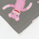Un delicioso patrón de monos de calcetines rosas posando sobre un fondo gris oscuro.