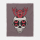 Ilustracion vectorial personalizado de un demonio que se alza de un cráneo con pesados gestos metalizado de la mano del cuerno del diablo.