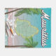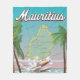 Mapa ilustrado de Mauricio en un hermoso estilo vintage o retro, con un avión de mar aterrizando en una hermosa playa.