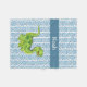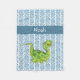Una bonita manta de lana para la guardería o la habitación de un niño pequeño, este diseño presenta un colorido dinosaurio verde de pradera con un patrón moderno de rayas de chevron azul y blanco como fondo. Edite el nombre de ejemplo que se muestra con el nombre deseado u otro texto.