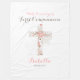 Elegante manta de lana para tu primera comunión sagrada con una cruz floral sobre un simple fondo blanco. Personaliza con texto, nombre y fecha. Hace un regalo para la confirmación.