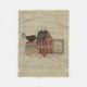 Estilo campestre La manta de tiro primitivo tiene una casa colonial de saltón con un corazón en la cima, una pila de cajas con una cuerda negra sentada en la parte superior, viñas de bayas de pipa, corazón y una foto enmarcada que dice "ME ENCANTA LAS PRIMS". Todo va en contra de una tela burlap que tiene una mirada ligeramente ondulada y arrugada hacia ella para un aspecto más realista. También hay una almohada a juego.
