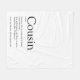 Personalice para que su primo cree un regalo único. Esta manta elegante es una manera perfecta de mostrarles lo asombrosos que son todos los días. Incluso puedes personalizar el fondo a su color favorito. Diseñado por Thisisnotme©