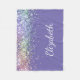 Una manta de chica finamente morada con un arcoiris falso purpurina confetti. Personaliza con su nombre en un guión blanco.