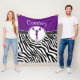 Manta salvaje del paño grueso y suave el animar o del pom del estampado de zebra en púrpura. Una silueta de la animadora o del chica del pom presenta dentro de un círculo y hay una bandera del "lunar" para el contraste. ¡Añada su propio nombre antes de ordenar! ¡Además, utilice el "personalizar él" botón para más opciones, incluyendo una diversa fuente!