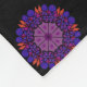 Diseño geométrico en tonos violetas y rojos con elementos de vidrio manchado.