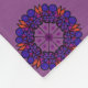 Diseño geométrico en tonos violetas y rojos con elementos de vidrio manchado.