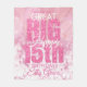 Una hermosa manta de pulpa de 15 cumpleaños efecto purpurina rosa. Este diseño femenino de niñas es la manera perfecta de desear a alguien un 'gran feliz cumpleaños número 15'. Personaliza con nuestro propio nombre personalizado. Tipografía rosa y blanca sobre un fondo de efecto burbuja. Un regalo perfecto para un cumpleaños 15 especial.
