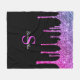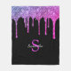Disfrute de este elegante diseño con su nombre y monograma o inicial con moda y goteo purpurina rosa brillante, morado y azul sobre un fondo negro.