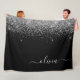 Manta Polar Purpurina negro plateado Script Monograma Nombre d