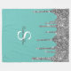 Disfrute de este elegante diseño con su nombre y monograma o inicial con moda y purpurina brillante de plata sobre un fondo verde azulado ligero.