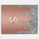 Disfrute de este elegante diseño de faja con su nombre y monograma o inicial con moda y purpurina brillante de plata sobre un fondo de cobre de oro rosa.
