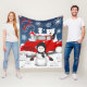 Este diseño presenta la nostalgia de un camión rojo vintage con algunos animales del Ártico y un muñeco de nieve en una escena invernal.
