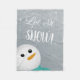 Una de las primeras piezas de arte digital que creé fue este muñeco de nieve. Se sometió a un ajuste antes de estar listo para su estreno. El hombre de nieve se sienta en un fondo gris con copos de nieve blancos junto con las palabras "déjalo nevar". Esta bonita y pequeña manta de muñecas de nieve hará de su hogar un acogedor complemento este invierno. A los niños les encantará acurrucarse en esta manta después de estar fuera construyendo su propio muñeco de nieve.