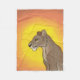 Esta es una pintura digital de una leona con una hermosa puesta de sol africana detrás de ella.