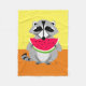 Un bonito mapache personalizado comiendo una sandía, un arte de vida salvaje de estilo contemporáneo, el color de fondo se puede editar para adaptarse a la decoración de cualquier habitación