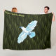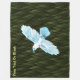 Una silueta blanca de un cuervo (Corvus corax) en vuelo superpuesta sobre un fondo fractal de tono verde que se parece mucho a un bosque de coníferas. Añade tu propio texto.