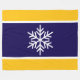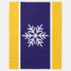 Este diseño navideño de Navidades festivos incluye un gran copo de nieve nórdico blanco centrado en una amplia marina profunda y rayas centrales blancas con bordes amarillo brillante.