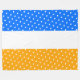 Este audaz y divertido diseño deportivo presenta un centro blanco amplio y rayas de fondo amarillas y azules brillantes. Los festivos puntos de polka blanca embaldosados se extienden por las franjas superior e inferior.
