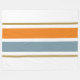 Este diseño deportivo presenta un fondo blanco con cálidas franjas de acento horizontal naranja y azul pizarra central, junto con piñones marrones cálidos.