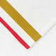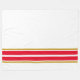 Este diseño deportivo presenta dos rayas de borde inferior rojo brillante con pinzas de color marrón cálido y flotante adyacentes contra un fondo blanco
