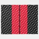 Este diseño festivo y deportivo presenta audaces rayas de carreras verticales de centro con doble rojo brillante llenas de puntos de polka blanco. El fondo es negro.