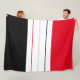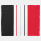 Esta moderna manta de lana presenta un patrón de rayas coloridas en rayas rojas, negras, grises y blancas.