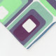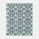Esta manta de lana media tiene un moderno diseño de rectángulos de tres gruesos colores fríos de azul, verde y morado sobre un campo de blanco. ¿Quieres el mismo diseño con colores diferentes? Mándame un mensaje.
