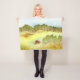 Una acuarela de un granero rojo palache en primavera adorna esta manta.