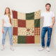 Manta Polar Red Green Patchwork Quilt Rustic Farmhouse Floral