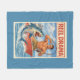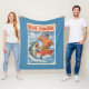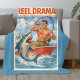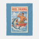 Reel Drama features a classic hero fisherman landing a huge shark as he flexes his skills in his fishing boat. Bold retro colors with poster art vibes and pure coastal confidence make this perfect for guys who always make catching the big fish look easy. Add nautical swagger to your beach home decor with this soft and cozy blue fleece throw blanket. | Matching throw pillow available in store.