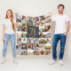 Moderno guión de foto múltiple de 70 años regalo de manta de pulpa de cumpleaños. Regalo ideal para mamáes, papás, abuelo, abuelo, abuelo de cualquier miembro de la familia. Impresionante texto elegante del guión. Diseño negro, blanco y dorado.