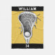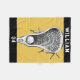 Cubierta para jugador de Lacrosse o entrenador con diseño de palo y bola sobre fondo dorado y negro. Para personalizar el texto de edición para agregar el nombre del jugador lax y el número de equipo #.