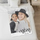 Una Simple Mata Personalizada. Celebra la maternidad con este diseño acogedor y minimalista que incluye una gran foto en la parte superior y la palabra "mamá" en una letra en minúscula de serif en la parte inferior derecha para una mirada cálida y lúdica. Debajo del texto, puedes agregar un "año de prueba" personalizado para hacerlo especial para una futura madre, una nueva madre, o para celebrar a mamá en cualquier momento. El texto se superpone entre la foto y una banda blanca en la parte inferior. Se pueden incluir hasta 3 años o acortarlos (como 23' 24' 25'). Perfecto para el Día de la Madre o como un regalo diario reflexivo, esta manta simple y moderna ofrece una manera atemporal de honrar a la madre con estilo.