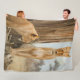 Una bella escena de un león y su leona que se paran orgullosamente sobre él en estas maravillosas mantas de lana.