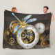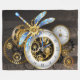 Diales antiguos con artes de oro y latón, decorados con libélula mecánica sobre fondo marrón, rayado. Steampunk.