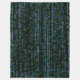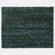 Un diseño abstracto oscuro de finas rayas de color verde y azul sobre negro con toques más pequeños de rojo y magenta.