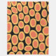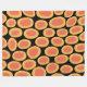 Un diseño abstracto pintado a mano compuesto de formas ovaladas con centros naranjas y con un borde ámbar sobre un fondo negro. El diseño está pintado en pintura al óleo digital con un ligero efecto que le da un aspecto pintado de aceite de pincelada.