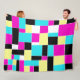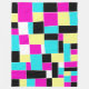 Un diseño abstracto original compuesto de rectángulos y cuadrados irregulares en rosa, amarillo, azul cian y negro.