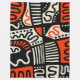 Un diseño abstracto audaz y original dibujado a mano en negro, rojo naranja y crema.