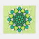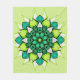 Una manta de mandala floral con una flor verde creada a partir de un dibujo botánico abstracto de tinta y acuarela.