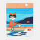 Este diseño de manta presenta un encantador ilustracion de dos gatos que disfrutan de un tranquilo viaje de pesca en un barco. El gato principal, con un juguetón parecido a una máscara en la cara, sostiene una caña de pescar con un pequeño pez naranja en el anzuelo, mientras que el otro gato, un compañero adorable, se sienta contentosamente cerca. El telón de fondo incluye aguas azules serenas y colinas lejanas bajo un suave cielo de durazno, creando una escena pacífica. El monograma "MW" en la esquina inferior añade un toque de personalización, que se puede personalizar con las iniciales para que la manta sea única suya.
