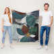 Una moderna y abstracta manta de arte floral con pétalos de gran tamaño en blanco verde azulado, burdeos, marino y crujiente, delineada con delicados lineamientos dorados. Las texturas en capas y los contrastes audaces entre los fondos oscuros y claros crean profundidad y sofisticación. Perfecto para los interiores contemporáneos, los amantes del arte botánico y aquellos que aprecian una sorprendente mezcla de minimalismo y lujo.