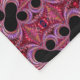 Esta manta de lana presenta un colorido patrón fractal con un signo de porcentaje negro en un fondo abstracto rojo, rosa y morado.