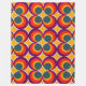 Esta gran manta de lana tiene un diseño moderno de mediados de siglo de círculos concéntricos de colores de los años 70 con estrellas entre cada grupo.