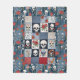 Manta Polar Retro Denim Patchwork con Rosas Skulls Skeletts