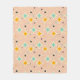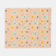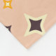 Retro geometric pattern with teal, orange, and black star-shaped diamonds on a peach background. The design conveys a playful, vintage feel.