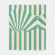 Esta obra de arte presenta un llamativo diseño de inspiración retro con audaces rayas radiantes en una paleta de colores verde azulado y crema. El patrón de arranque central se acentúa con líneas angulares y formas geométricas, creando un sentido de movimiento y energía. La textura desgastada y angustiada le da un toque vintage que recuerda a los viejos posters o a los carteles. Pequeñas estrellas y puntos esparcidos por todo el diseño realzan su estética nostálgica y dinámica, convirtiéndola en una pieza visualmente atractiva.