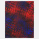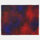 Riscos vermelhos com tons mais claros e escuros que foram cruzados e passados em filtro que os modificou de maneira que não se percibe mais serem riscos, mas, parecem formatos quase quadradas sobre um fundo azul, podendo causar una percepción de profundidade no azul.